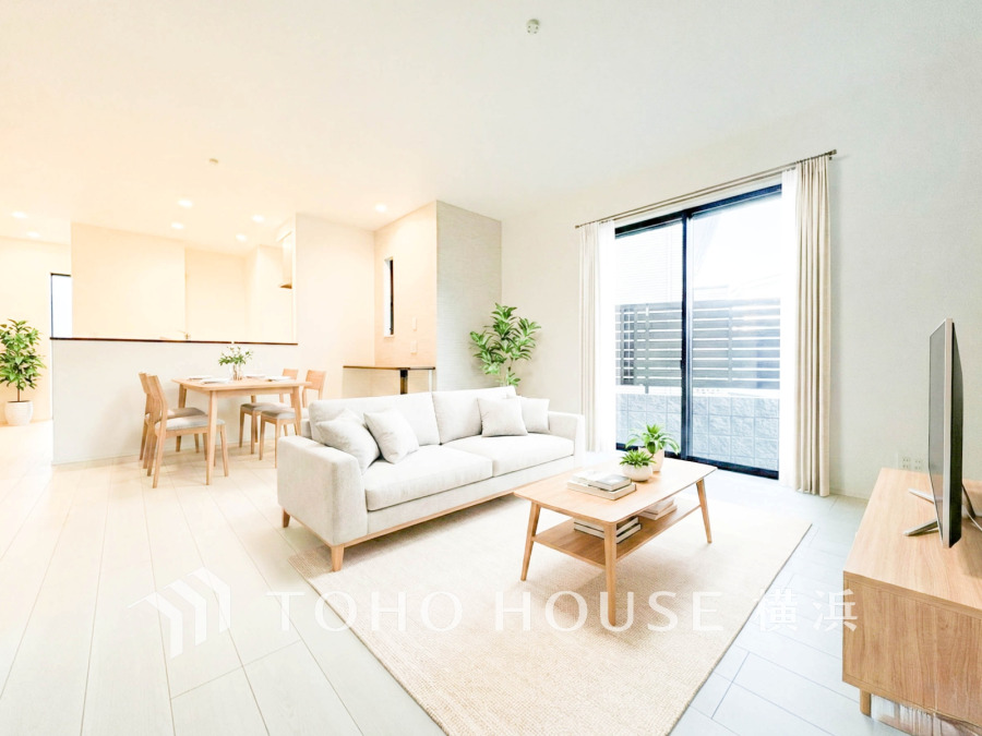 明るく開放的な空間が広がるLDK。室内には豊かな陽光が注ぎ込み、爽やかな住空間を演出。