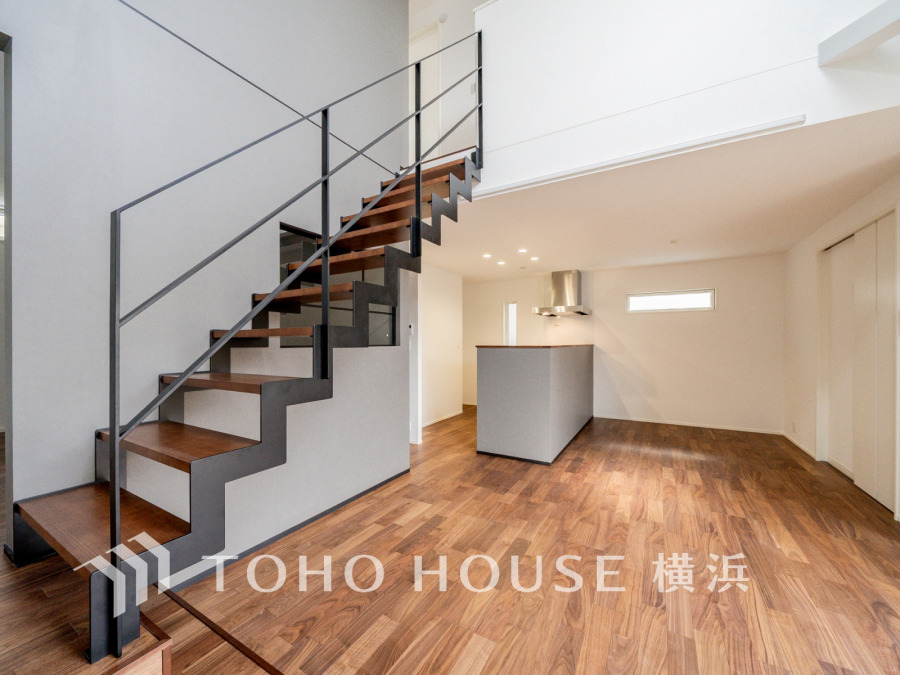 リビングには、お洒落なインテリアのように目を惹く、スタイリッシュなスリップ階段。ご家族のコミュニケーションが取りやすく、自然と挨拶を交わせるような設計です。