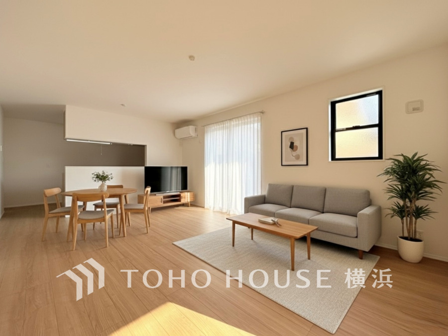 明るく開放的な空間が広がるLDK。室内には豊かな陽光が注ぎ込み、爽やかな住空間を演出。