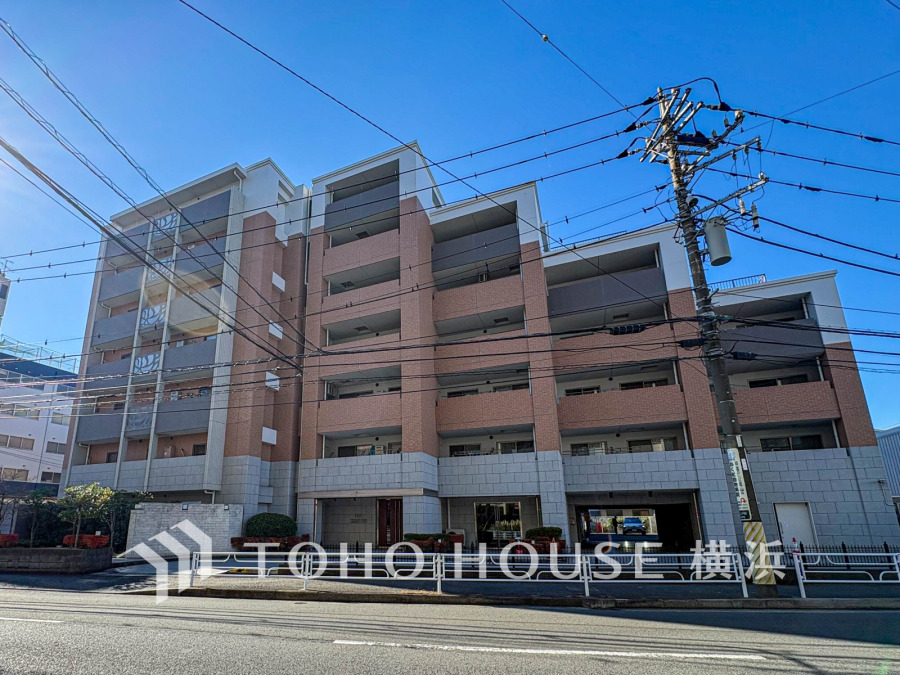 陽当たり良好な5階建てマンション。落ち着いた色調の外観が街並みに調和し、快適な都市生活を提供します。