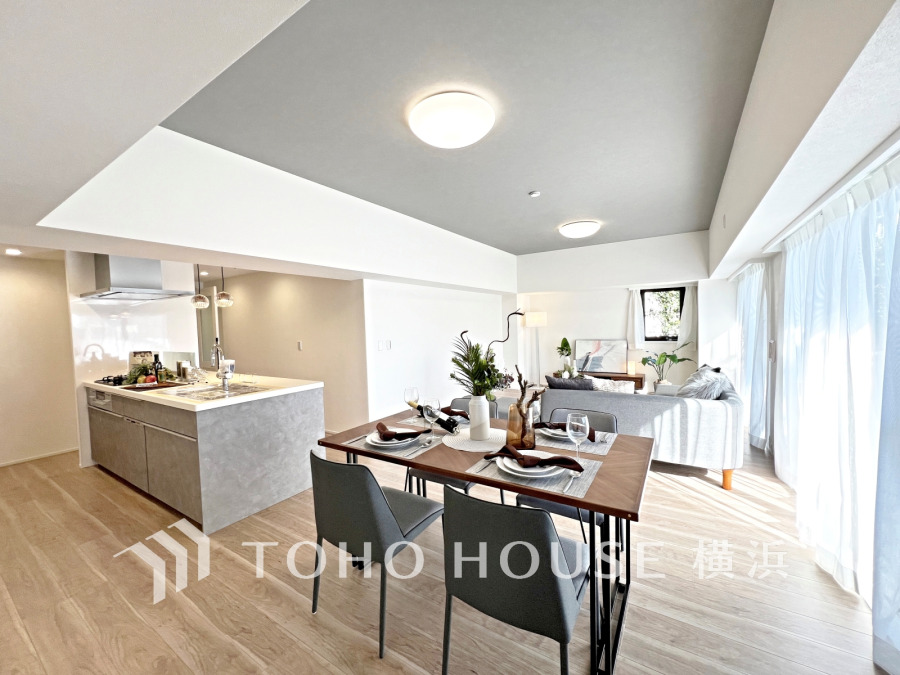 明るく開放的な空間が広がるLDK。室内には豊かな陽光が注ぎ込み、爽やかな住空間を演出。