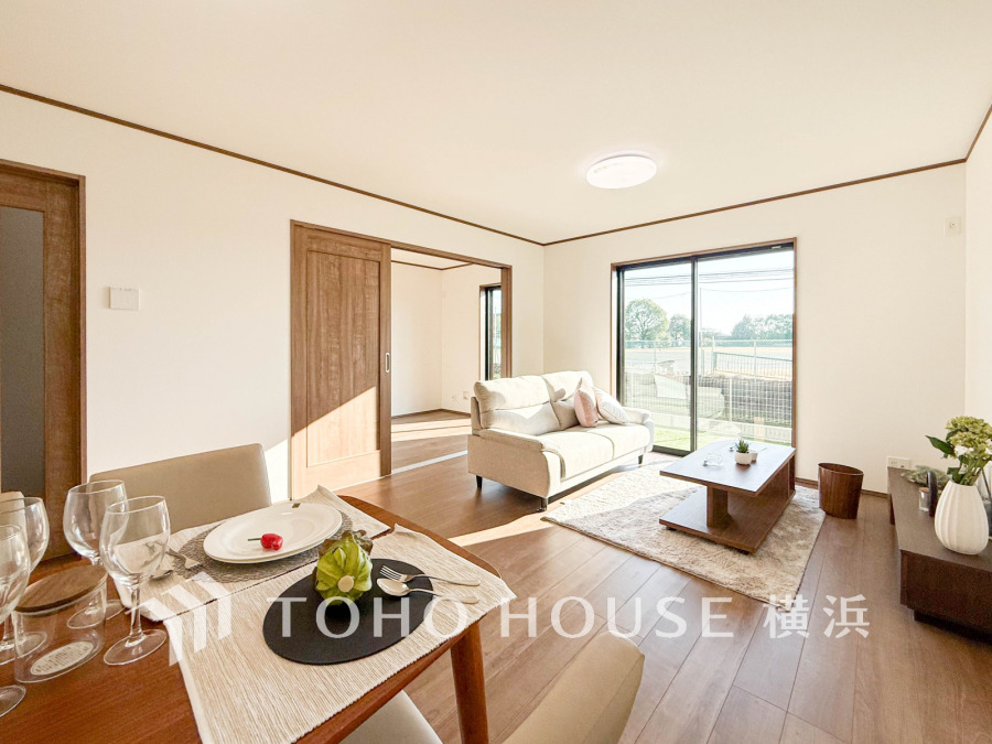 自然光がたっぷり入る明るいリビング。シンプルな内装で家具の配置も自在、快適な家族の団らん空間です。