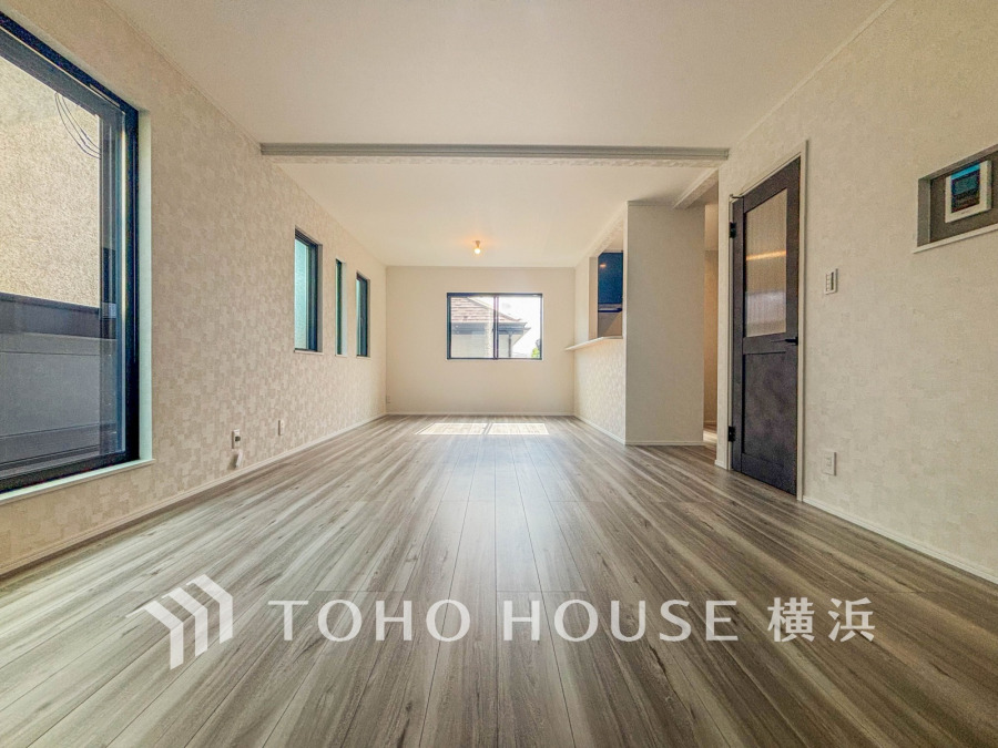 明るい光が差し込む広々19.02帖のLDK空間。大型の家具を配置してもゆとりがあります。