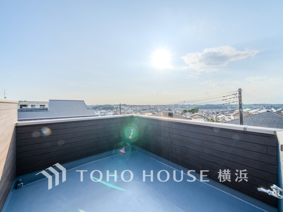 大空を感じてのびやかな時間を愉しめる、開放感溢れるルーフバルコニー。お天気の良い日には、アウトドアリビングとしてお使い頂くのも素敵です。