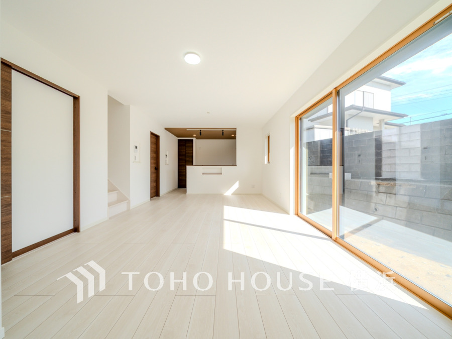 明るく開放的な空間が広がるLDK。室内には豊かな陽光が注ぎ込み、爽やかな住空間を演出。