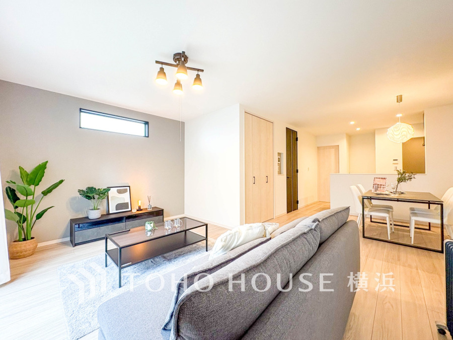 明るく開放的な空間が広がるLDK。室内には豊かな陽光が注ぎ込み、爽やかな住空間を演出。ホームパーティーでもゲストと一緒に料理を楽しみながら楽しい時間を過ごせそう。