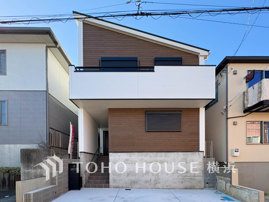 閑静な住宅街に佇む、スタイリッシュな2階建て新築戸建。駐車スペースも確保された快適な住環境です。