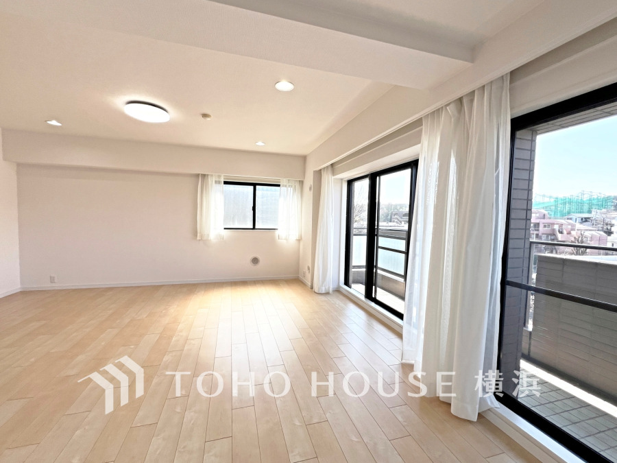 明るく開放的な空間が広がるLDK。室内には豊かな陽光が注ぎ込み、爽やかな住空間を演出。