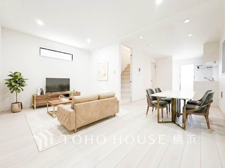 柔らかな色合いのフローリングと清潔感の溢れるクロスが明るい空間を創り出しているリビングダイニング。憩いの場に相応しく、ここで楽しむ家族の時間が絆をより深めてくれそうです。