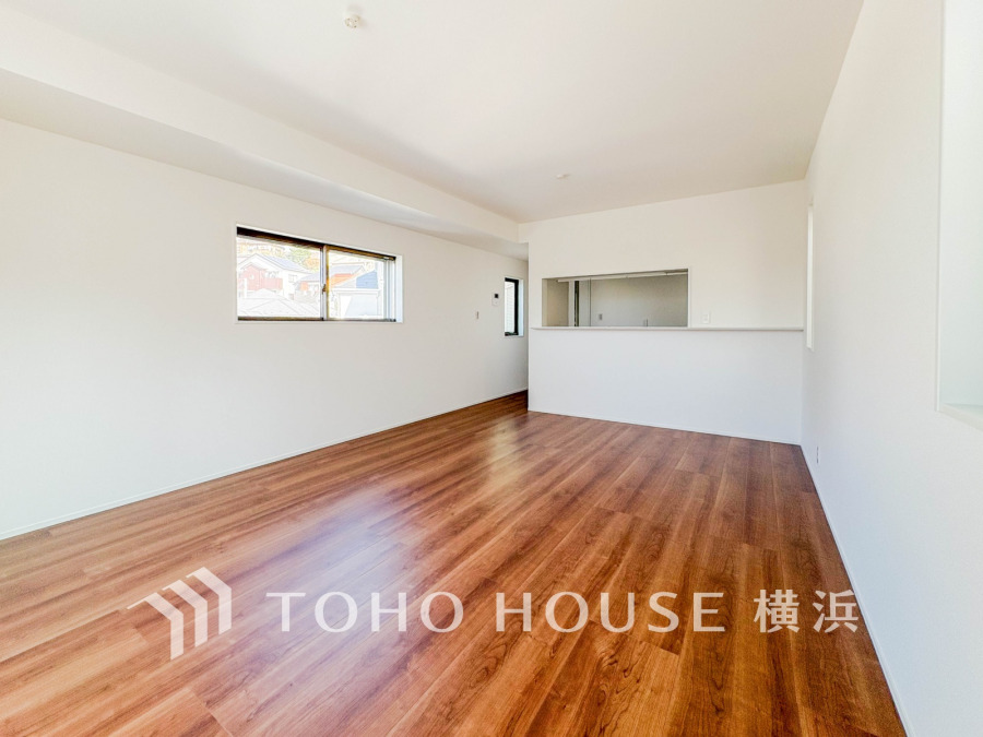 木目が美しいフローリングと白壁で明るく開放感のあるリビング。自然光がたっぷり差し込みます。