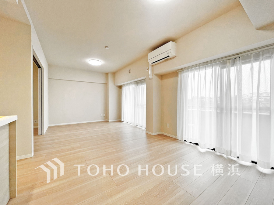 明るく開放的な空間が広がるLDK。室内には豊かな陽光が注ぎ込み、爽やかな住空間を演出。