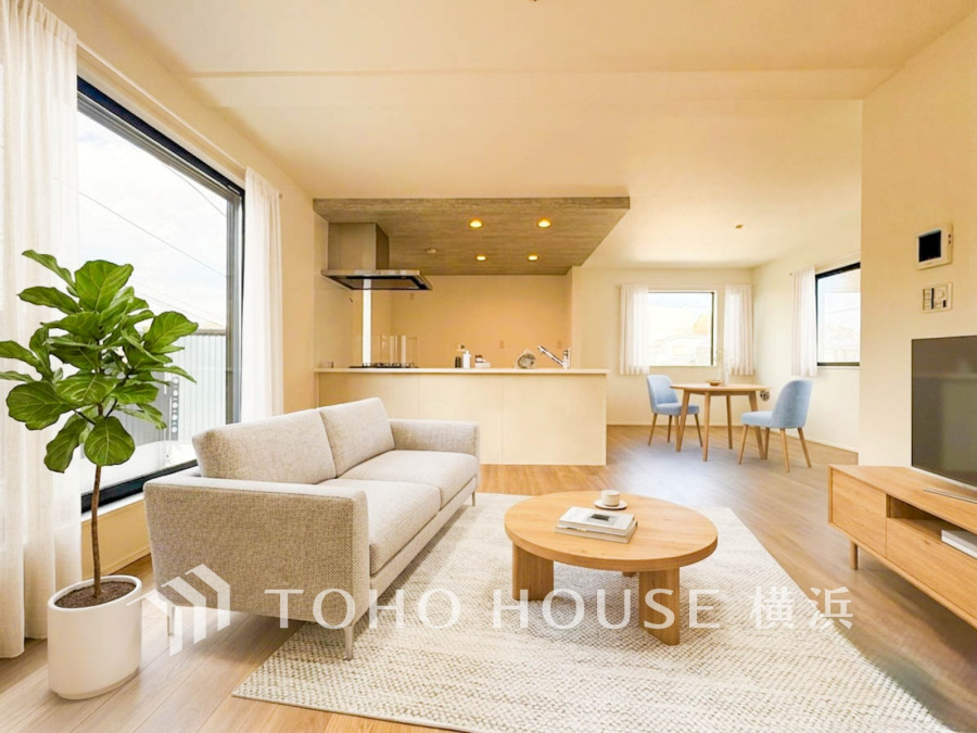 広々としたリビング・ダイニングは、光が広がるシンプルさがお洒落な内装。落ち着いた雰囲気に包まれて、伸びやかな空間のなかで、ゆったりと家族団らんのひとときを過ごせます。