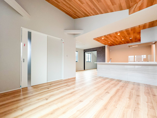 広々としたリビング・ダイニングは、光が広がるシンプルさがお洒落な内装。落ち着いた雰囲気に包まれて、伸びやかな空間のなかで、ゆったりと家族団らんのひとときを過ごせます。