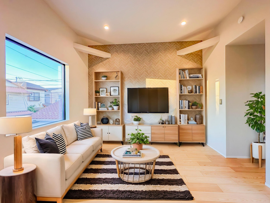 大きな窓からたっぷりと陽光が注がれる明るい空間。家族の成長に対応できる永住仕様の間取り。時を忘れて過ごす場所として過ごせるお部屋。