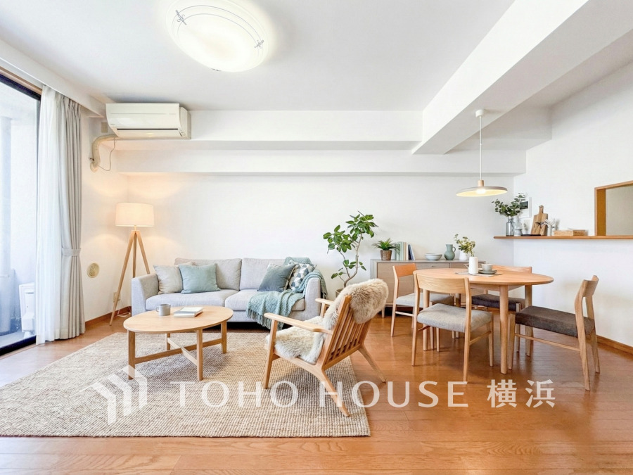 明るく開放的な空間が広がるLDK。室内には豊かな陽光が注ぎ込み、爽やかな住空間を演出。