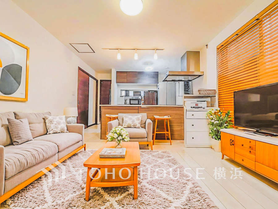 明るく開放的な空間が広がるLDK。室内には豊かな陽光が注ぎ込み、爽やかな住空間を演出。ホームパーティーでもゲストと一緒に料理を楽しみながら楽しい時間を過ごせそう。