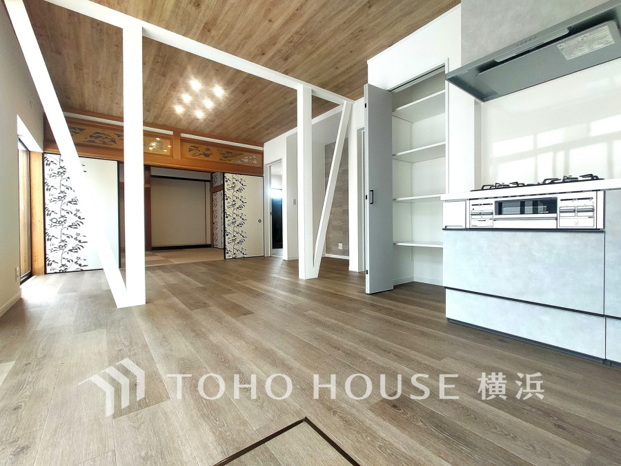 明るく開放的な空間が広がるLDK。室内には豊かな陽光が注ぎ込み、爽やかな住空間を演出。