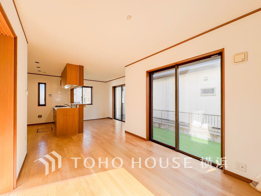 明るく開放的な空間が広がるLDK。室内には豊かな陽光が注ぎ込み、爽やかな住空間を演出。ホームパーティーでもゲストと一緒に料理を楽しみながら楽しい時間を過ごせそう。