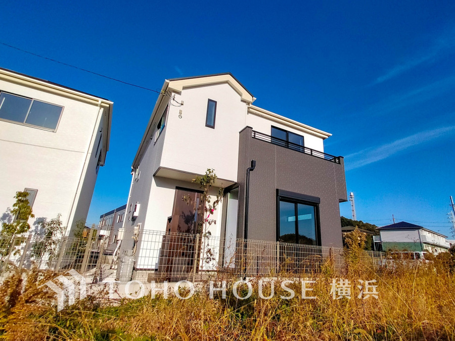 青空に映えるスタイリッシュな新築のおすまい。たっぷり降り注ぐ暖かな陽光と自然豊かな環境も魅力です。