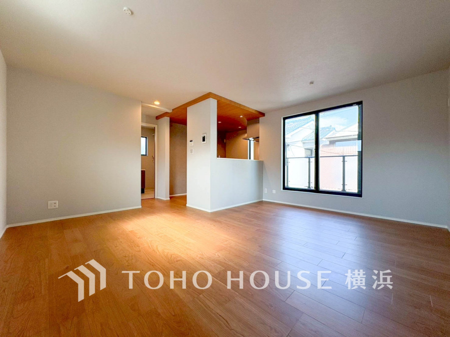 スタイリッシュな対面キッチンを採用。キッチンからリビングが見渡せるので、お子様を安心して遊ばせながら家事ができますね!リビング学習をするお子様にも声がかけやすい自然な距離感です